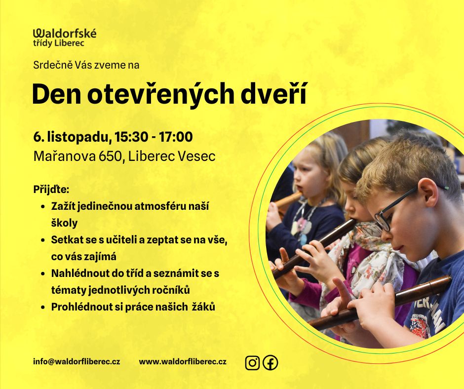 Zveme všechny rodiče i děti, kteří se chtějí seznámit s waldorfským vzděláváním, poznat atmosféru školy a setkat se s našimi učiteli.