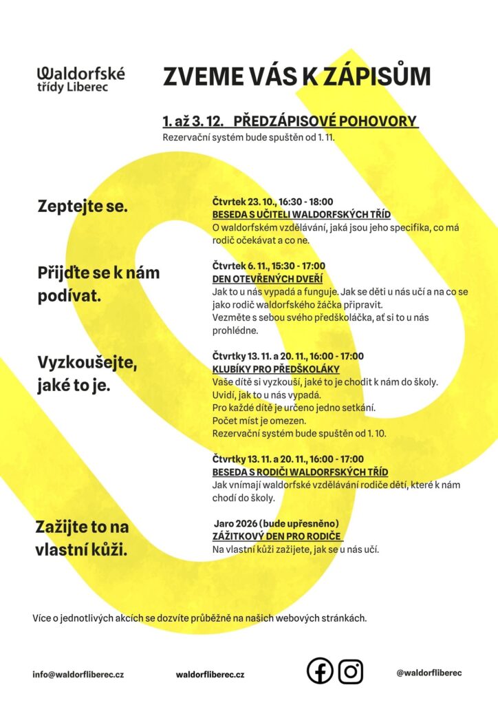Tyto akce Vám přiblíží, o čem je waldorfské vzdělávání a jaká jsou jeho specifika.