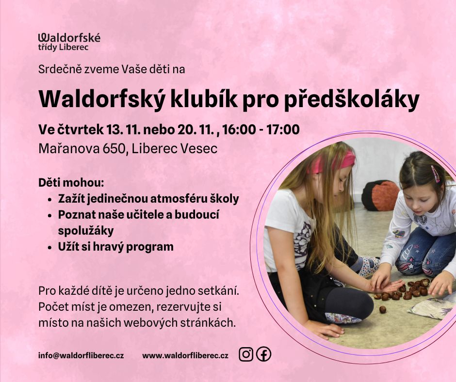 Ve čtvrtek 13. 11. nebo 20.11. od 16:00 do 17:00 – přihlaste své dítě do Waldorfského klubíku pro předškoláky!