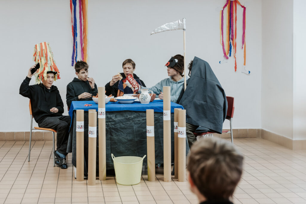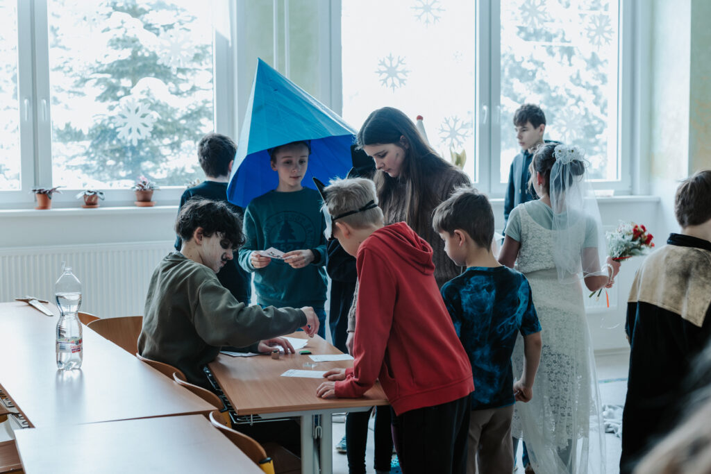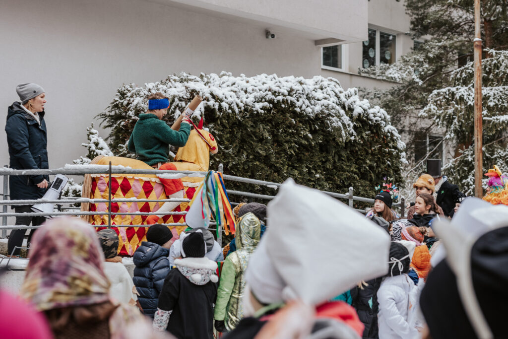 Po návratu do tříd na ně čekaly různé zábavné aktivity. Novinkou byla módní přehlídka tradičních masek – vítězem se staly obě kobyly, které si tak mohly pochutnat na dalších koblihách.