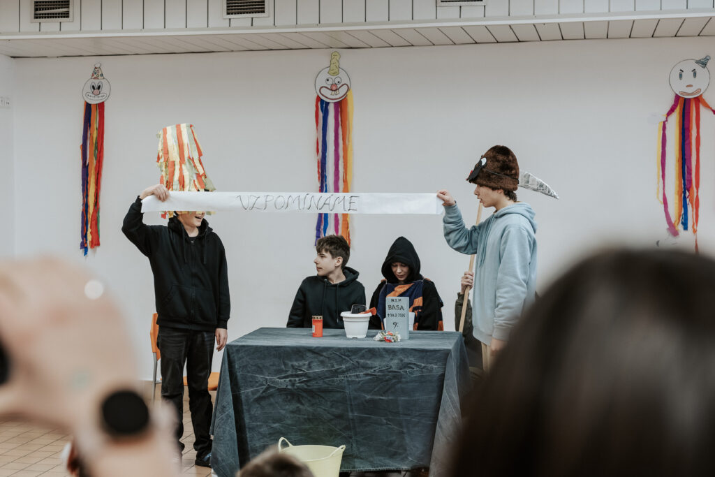 Masopust jsme uzavřeli tradičním „pohřbením basy“ v poněkud netradičním, o to však současnějším a vtipnějším podání kluků z 8. W.
